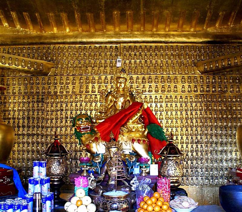 銅殿建于明代萬歷三十七年(公元1609年)。殿高8.3米,寬4.7米,入深4.5米,它是我國僅有的三銅殿中的一座。另外兩座,一在浙江的普陀山,一在四川的峨眉山。不過就其建筑藝術和美觀俊雅而言,那兩座都不及這座銅殿,而且峨眉山的銅殿早巳在戰火中焚燒壞了。
